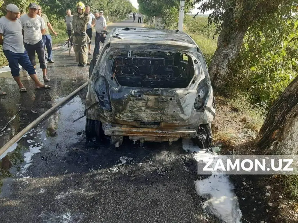 To‘raqo‘rg‘on tumanida avtohalokat: “Spark” yonib ketdi