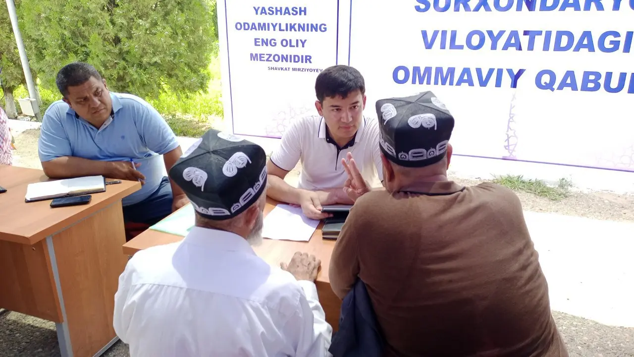Prezidentning Fuqarolar huquqlarini himoya qilish va murojaatlar bilan ishlash masalalari bo‘yicha maslahatchisi boshchiligidagi ishchi guruhi tarkibidan o‘rin olgan Xalq qabulxonalari, Vazirlar Mahkamasi, Oliy sud, Sudyalar oliy kengashi, Bosh prokuratura, o‘ttizga yaqin vazirlik, qo‘mita va tashkilotlar rahbarlarining ommaviy qabullari Termiz shahridan 90 kilometr masofadagi Qumqo‘rg‘on tumanining “Yangiyer” mahallasidan boshlanib, viloyat markazidan 120 kilometr olisdagi Denov tumanining “Istiqbol” mahallasida davom etdi.