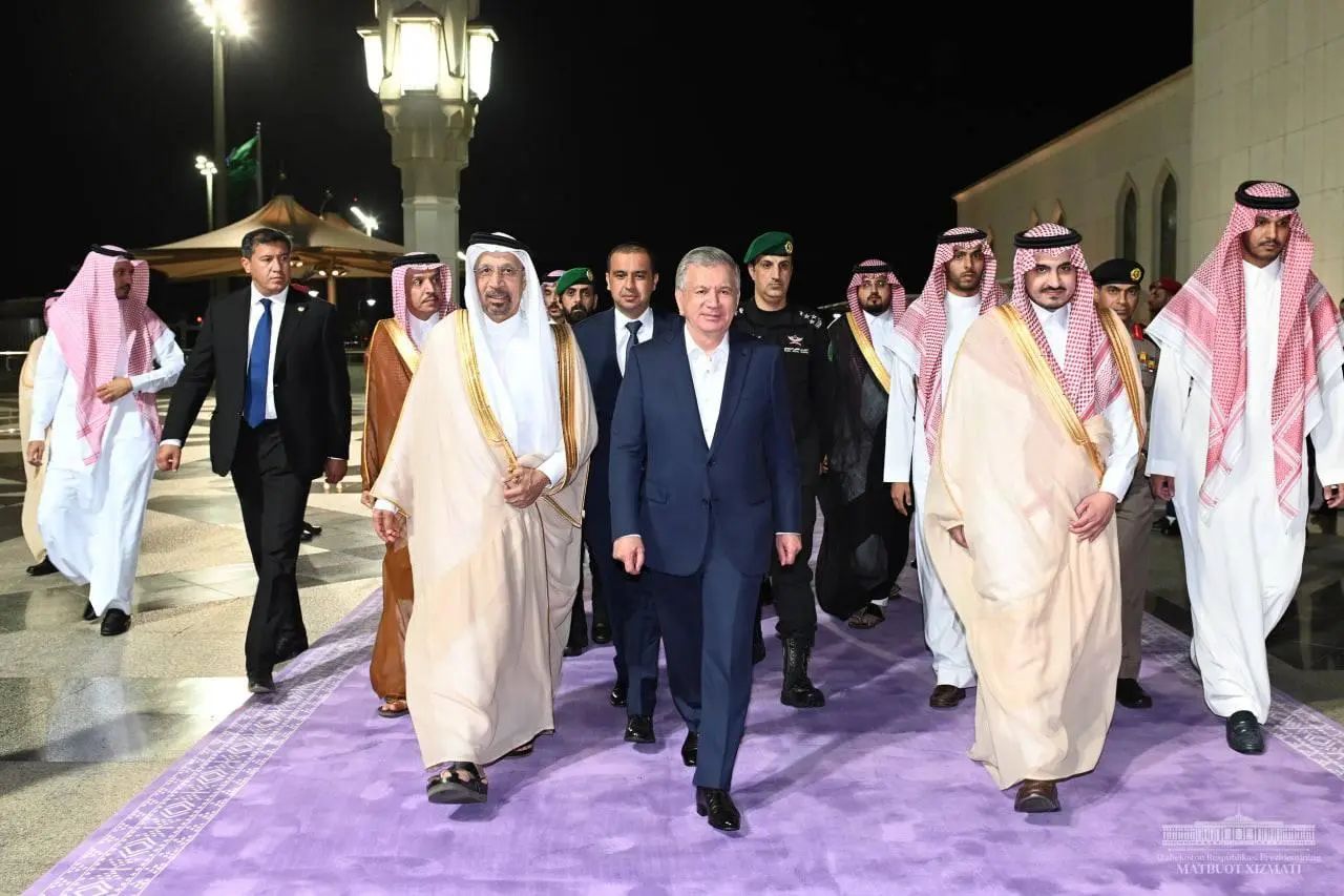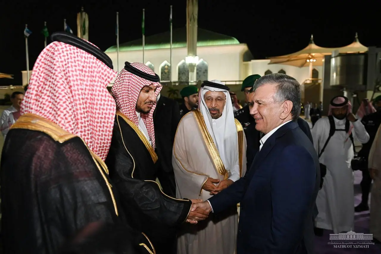 Qirol Abdulaziz xalqaro aeroportida Mirziyoyevni Makka viloyati hokimi vazifasini bajaruvchi shahzoda Badr bin Sulton bin Abdulaziz boshchiligidagi yuqori martabali amaldorlar kutib olgandi.