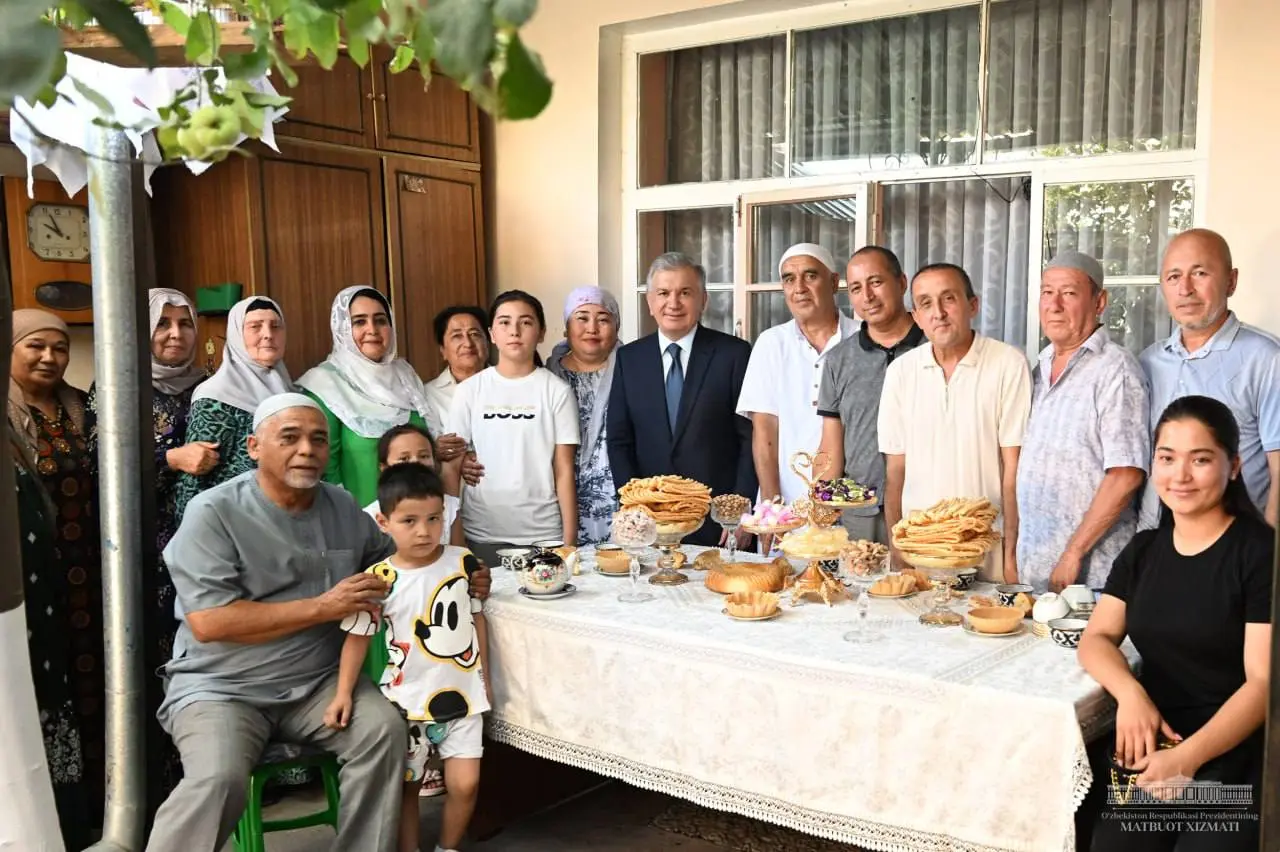 Davlat rahbari xonadonlardagi sharoitlarni kirib ko‘rdi, aholi vakillari bilan suhbatlashdi. Nuroniylarning mahalladagi turmush tarzi, yoshlarning kasb-kori haqida so‘z bordi. Tinchlik-osoyishtalik, xonadonlarga fayzu baraka tilab duo qilindi.