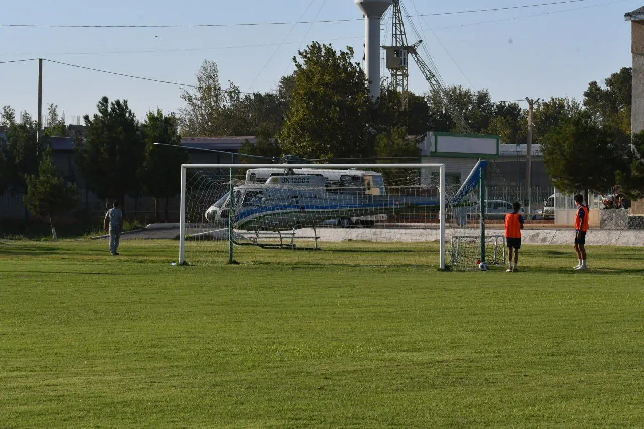 O‘zbekistonda futbol o‘yini vaqtida maydonga vertolyot qo‘ndi