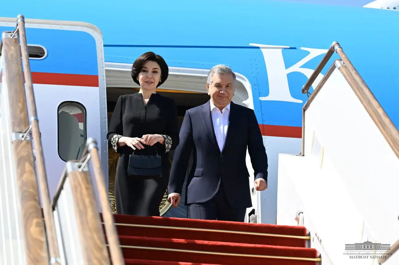Президент матбуот хизматининг хабар беришича, олий мартабали меҳмонларни Озарбайжон президенти Илҳом Алиев ва рафиқаси кутиб олди.