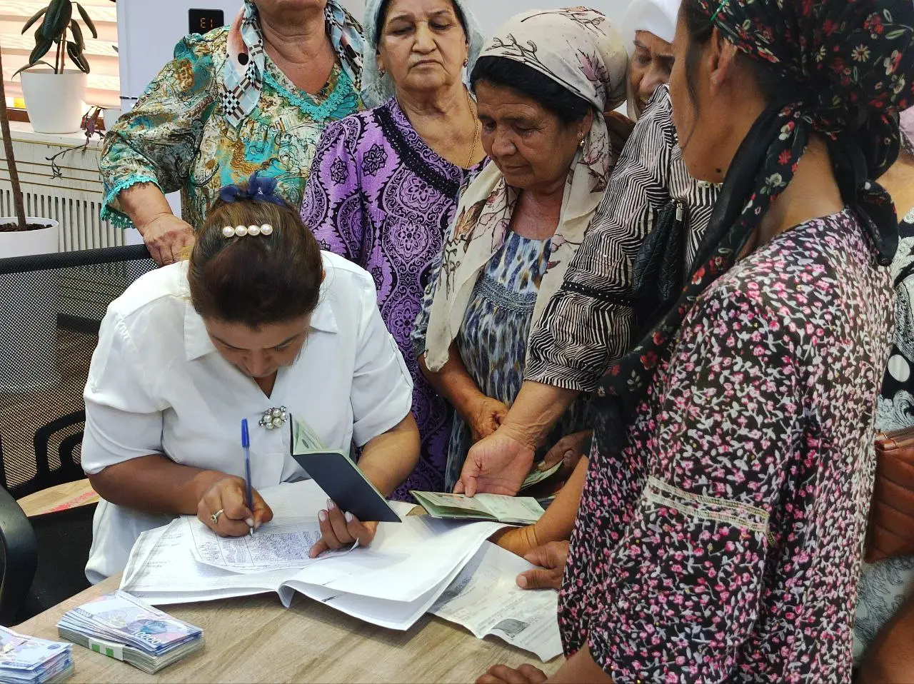 Shuningdek, 5 nafar ishsiz xotin-qizlar bandligini taʼminlash maqsadida ularning tikuvchilik kasbini egallaganligini inobatga olib, “Ayollar daftari” jamg‘armasi mablag‘lari hisobidan 23,5 mln so‘mga tikuv mashinalari olib berildi. Ijtimoiy himoyaga muhtoj, boquvchisini yo‘qotgan hamda nogironligi bo‘lgan 91 nafar xotin-qizlarga “Ayollar daftari” jamg‘armasi hisobidan jami 120,1 mln so‘m moddiy yordam pullari olib berildi, 3 nafar fuqaroga jami 19,2 mln so‘m miqdorida subsidiya mablag‘lari evaziga tikuvchilik faoliyatini boshlash uchun press asbob-uskunasi va umumiy ovqatlanish faoliyati uchun zarur bo‘lgan gaz plitalari topshirildi.